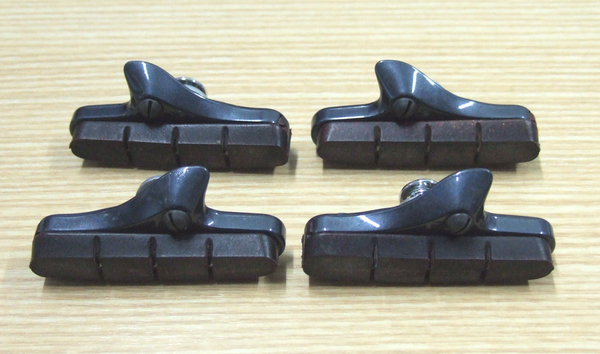 カーボン用のブレーキシューがご入用の際は、ご連絡を頂戴できましたら、9枚目の写真のカーボンシューをカートリッジホルダーから外してご用意します。カートリッジホルダーはお付けできませんが、こちらのカーボンシューはシマノ製のカートリッジホルダーに装着できます。